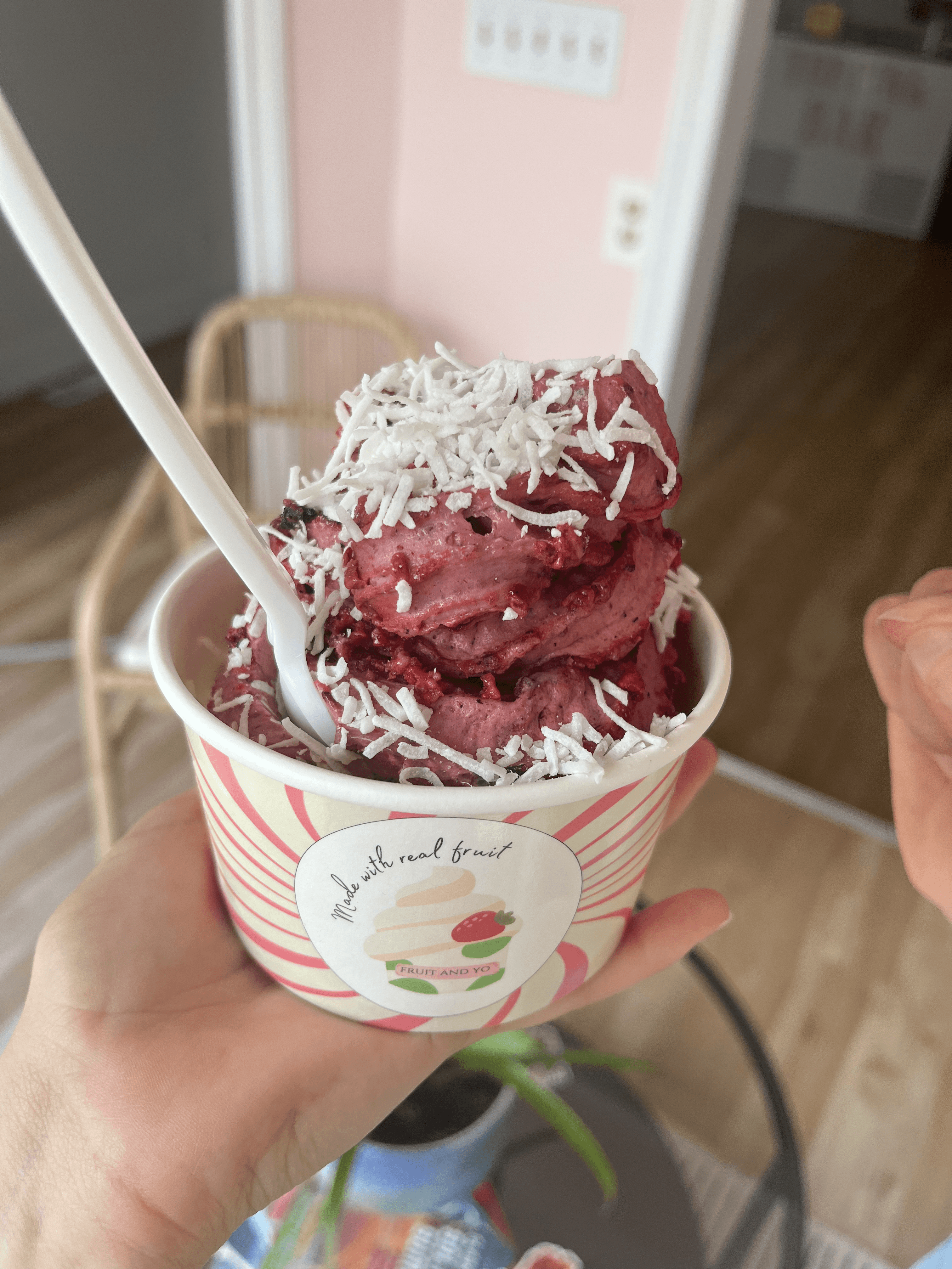 "Very delicious frozen yogurt! The texture of the frozen yogurt with the fruit mix ins was really awesome. Very sweet staff and a cool window seating spot. A great addition to the neighborhood and affordable!" ~ Abby